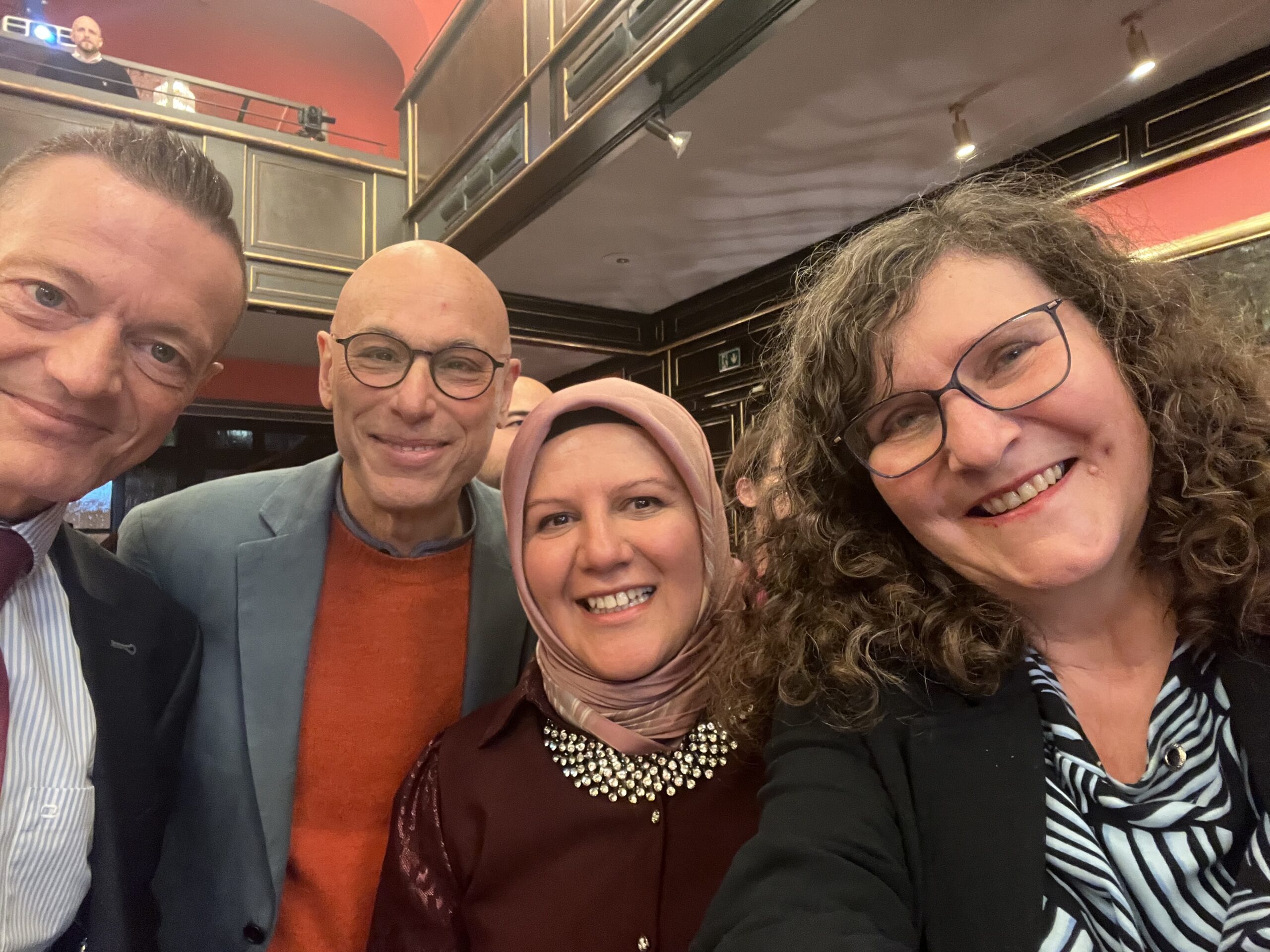 DreiMahl ist ein dialogorientiertes Begegnungsformat, das Menschen mit unterschiedlichen politischen Haltungen durch gemeinsames Essen zusammenbringt. Derzeit in der Antragsphase. Wir sind zuversichtlich, dass wir im Frühjahr 2026 starten können. Weitere Informationen folgen zeitnah. Auf dem Foto seht ihr unser Team: Terry Swartzberg, Elif Tan und Sabine Böhlau. Daneben Karl Straub, der Integrationsbeauftragte der bayerischen Staatsregierung.